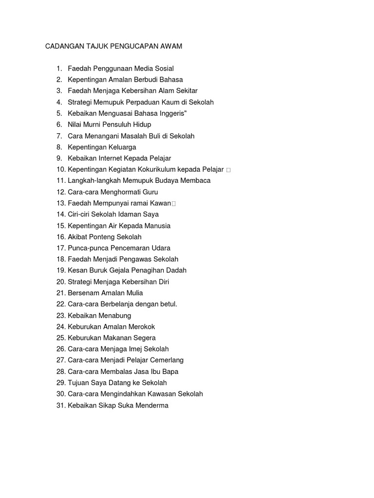 Contoh Tajuk Pengucapan Awam Menarik Yang Ringkas Spontan
