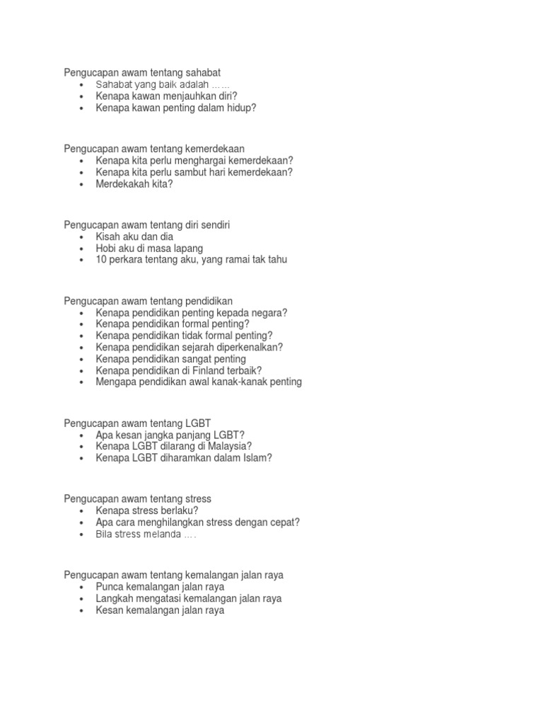 Pelajar Boleh Memilih Tajuk Lain Berdasarkan Tajuk Dalam Ini Adalah Cadangan Contoh Tajuk Tema Pdf Document
