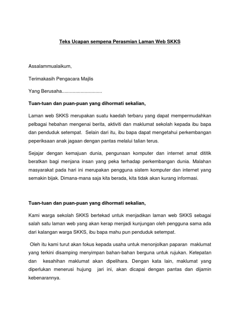 Teks Ucapan Sempena Perasmian Laman Web Skks
