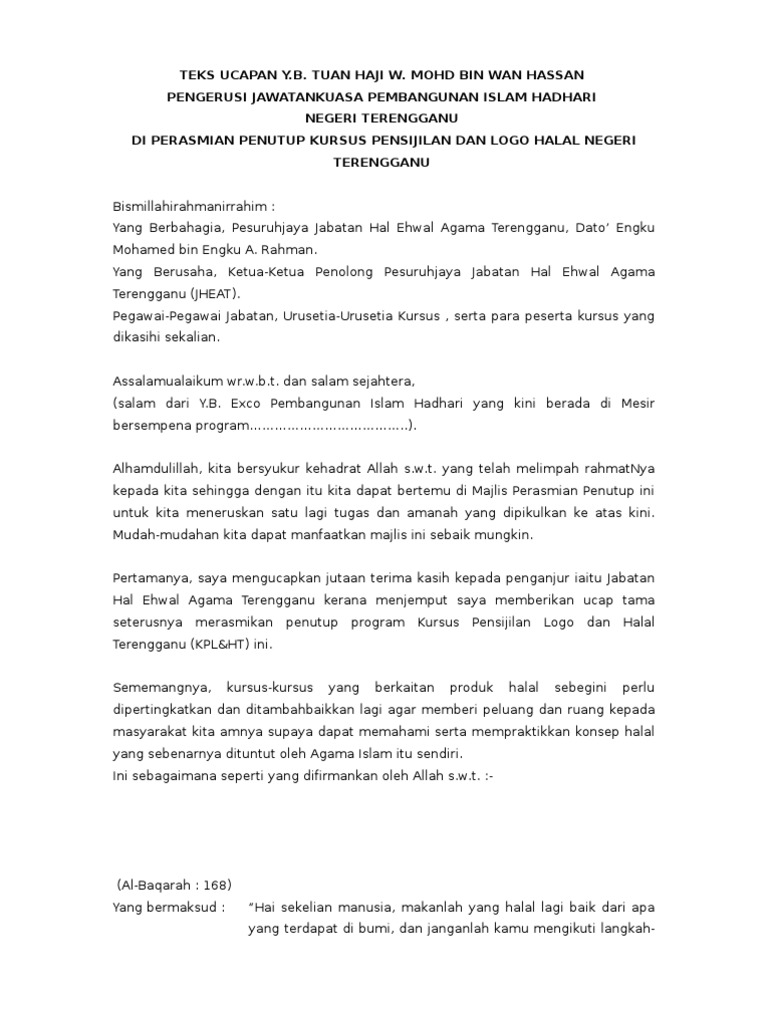Doc Contoh Teks Ucapan Nc Majlis Perasmian Penutup Program Solehulhafiz Suhaimi Academia Edu