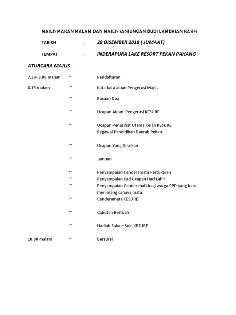 Contoh Tentatif Majlis Makan Malam