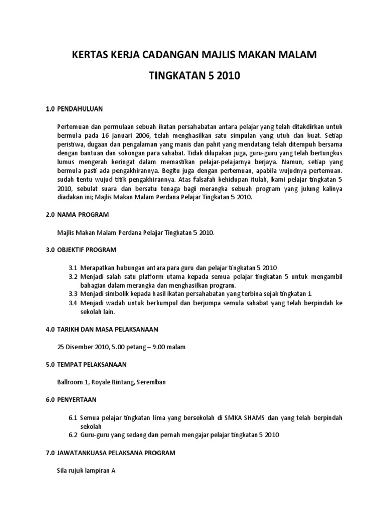 Doc Kertas Kerja Majlis Makan Malam 2014 Aishah Nur Academia Edu