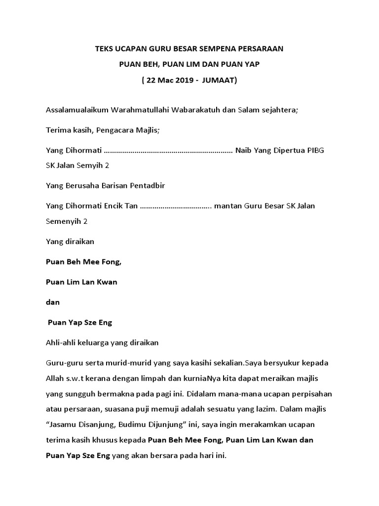 Teks Ucapan Persaraan Puan Cheam Pages 1 3 Text Version Anyflip