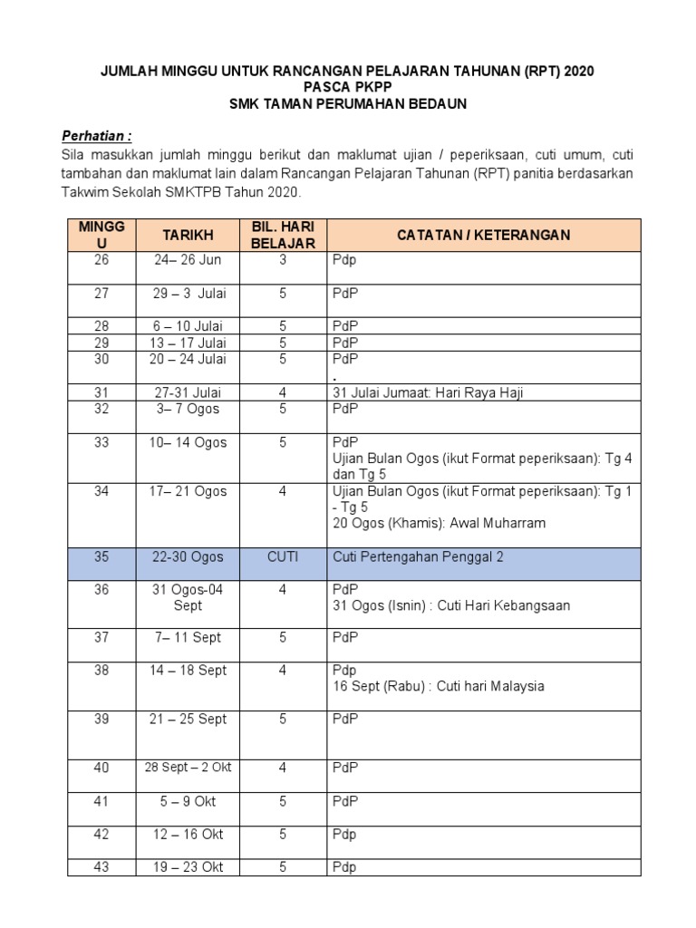 Takwim Rpt Pasca Pkpp 2020