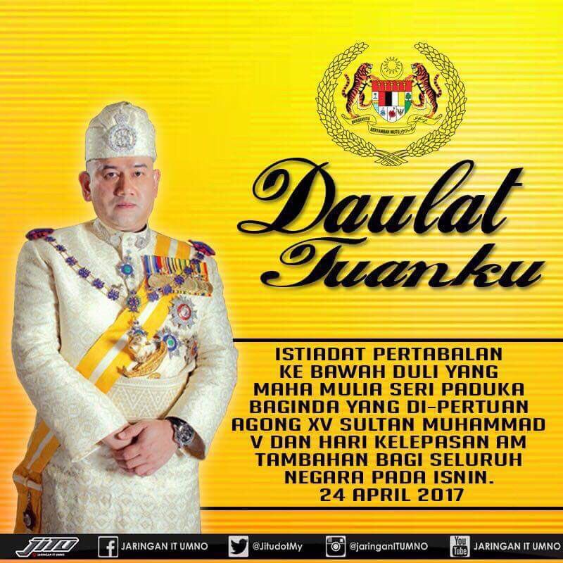 Jaringan It Umno On Twitter Daulat Tuanku 24 April 2017 Hari Pertabalan Ydpa Xv Hari Kelepasan Am Tambahan Cuti Jitu