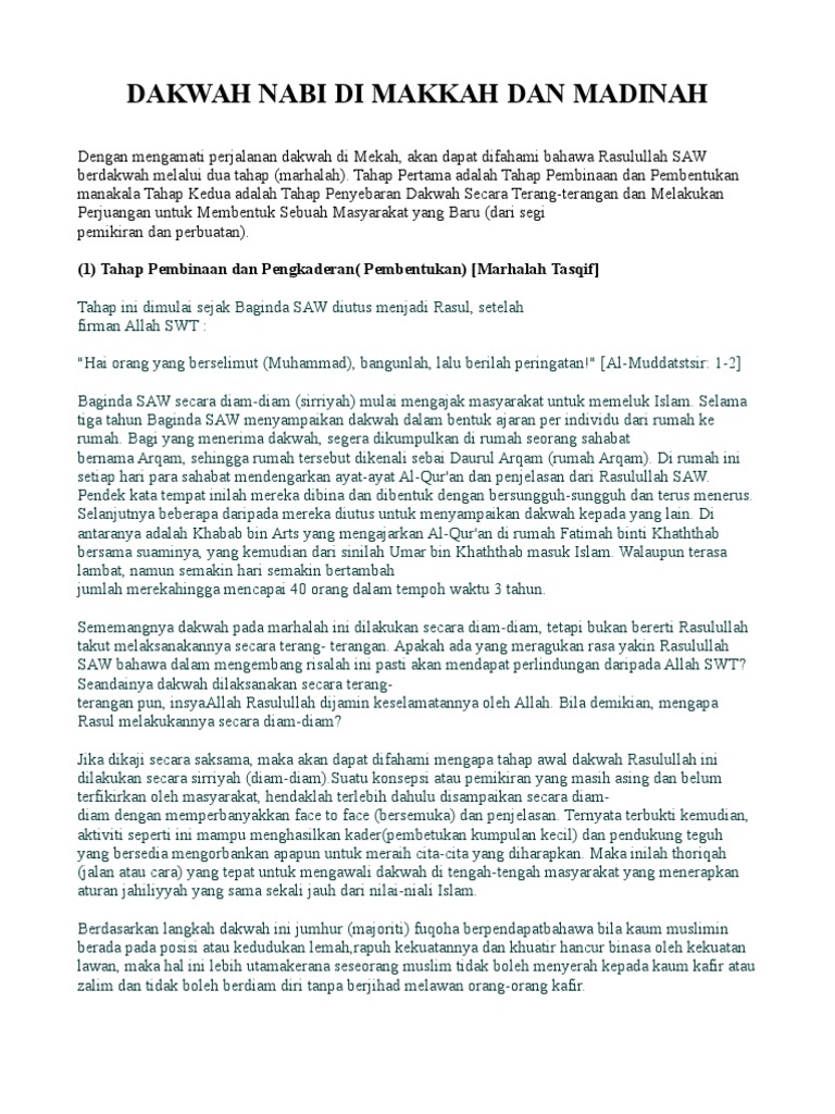 Dakwah Nabi Di Makkah Dan Madinah 1 Tahap Pembinaan Dan Pengkaderan Pembentukan Marhalah Tasqif