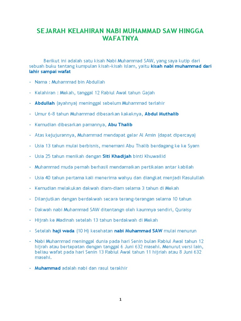 Sejarah Kelahiran Nabi Muhammad Saw Hingga Wafatnya Lahir Sampai Wafat