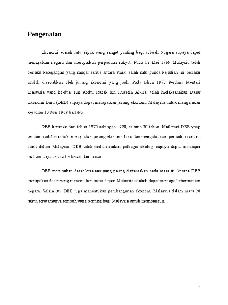 Dasar Ekonomi Baru Deb Dan Hubungan Kaum By Walerie Teng