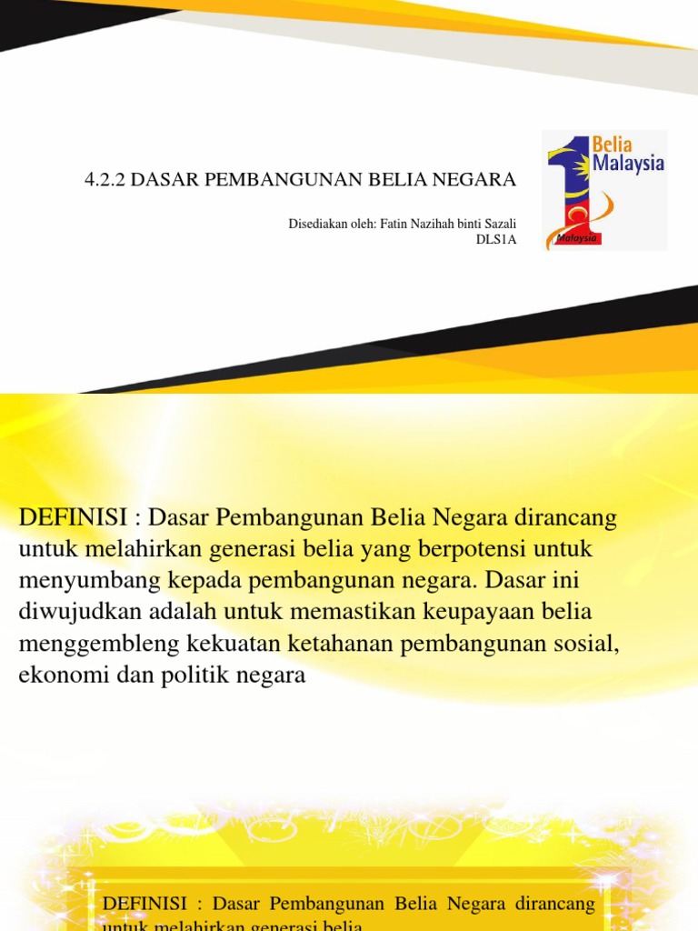 4 2 2 Dasar Pembangunan Belia Negara Disediakan Oleh Fatin Nazihah Binti Sazali Dls1a