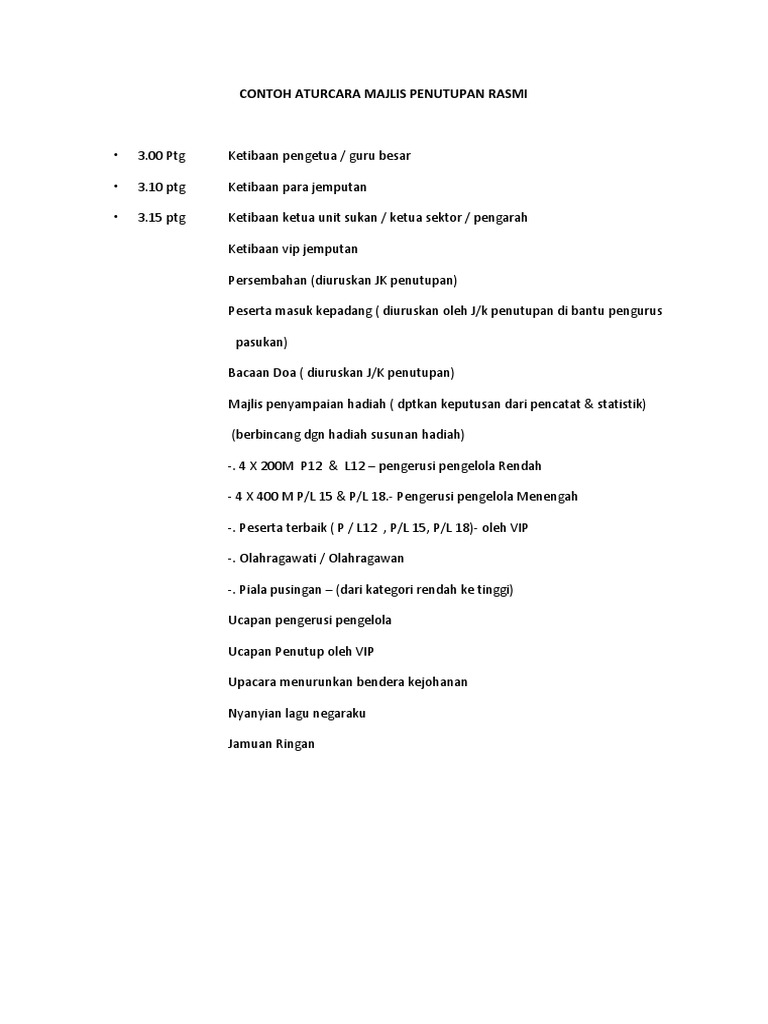 Contoh Aturcara Majlis Penutupan Rasmi