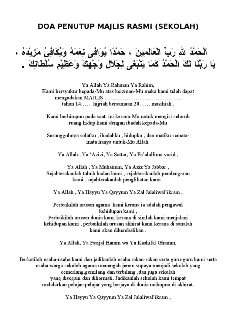 Doa Penutup Mjlis Resmi