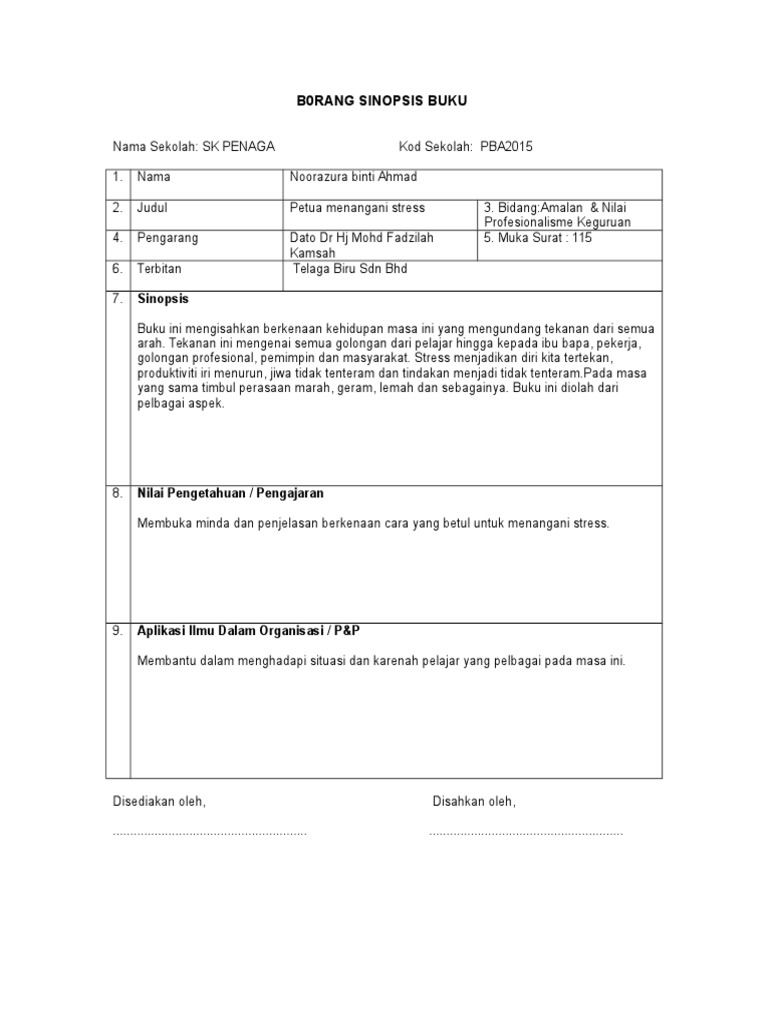 Borang Sinopsis Buku Untuk Guru Doc Document