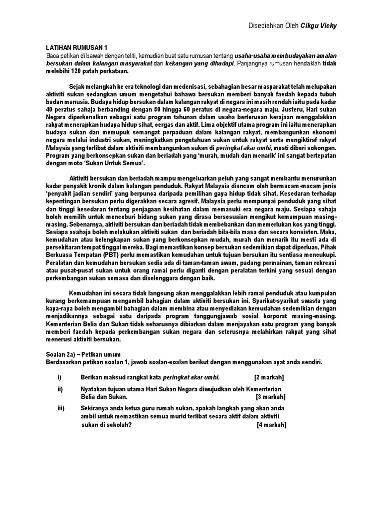 1murid 1sukan Dalam Pembentukan Masyarakat Malaysia