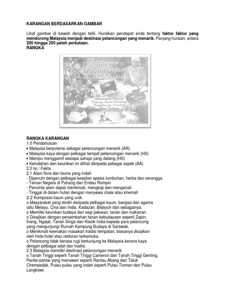 Karangan Panas Spm Keistimewaan Malaysia Menarik Pelancong