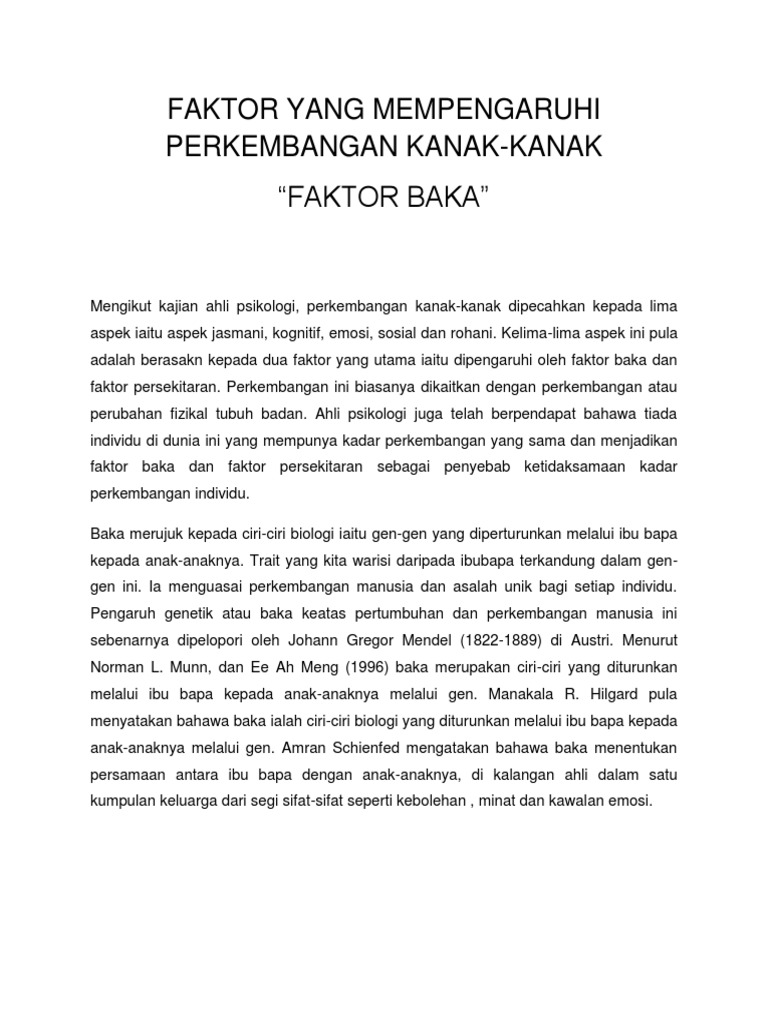 Faktor Baka Yang Mempengaruhi Perkembangan Kanak