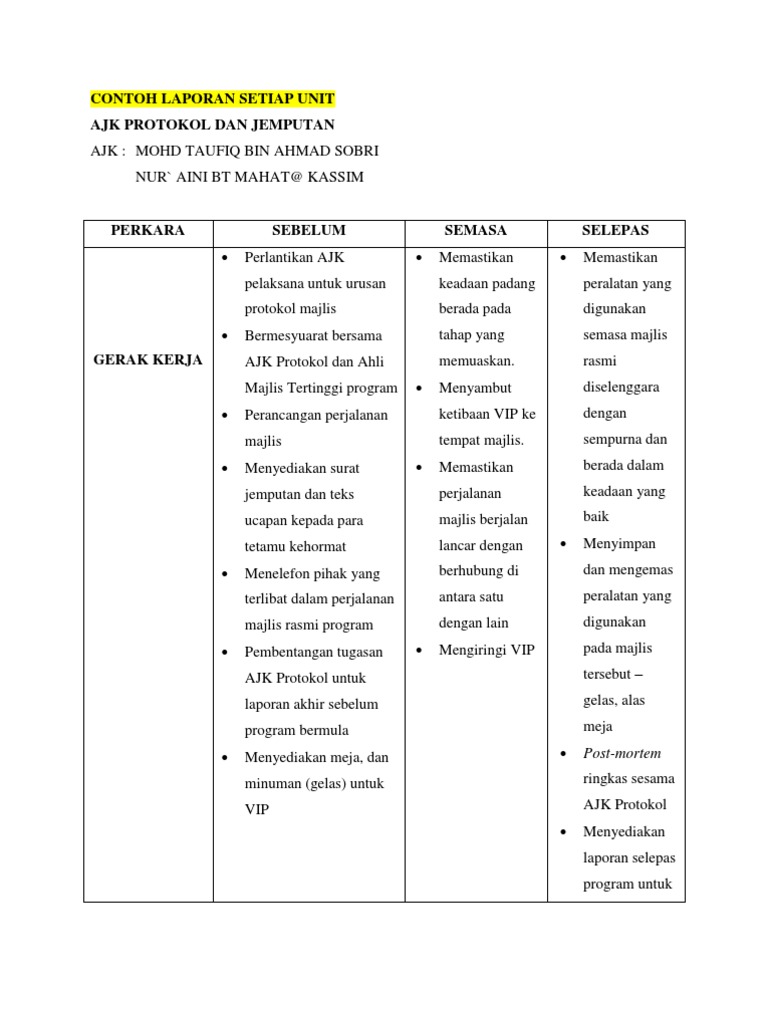 Contoh Laporan Ajk Ko K 1