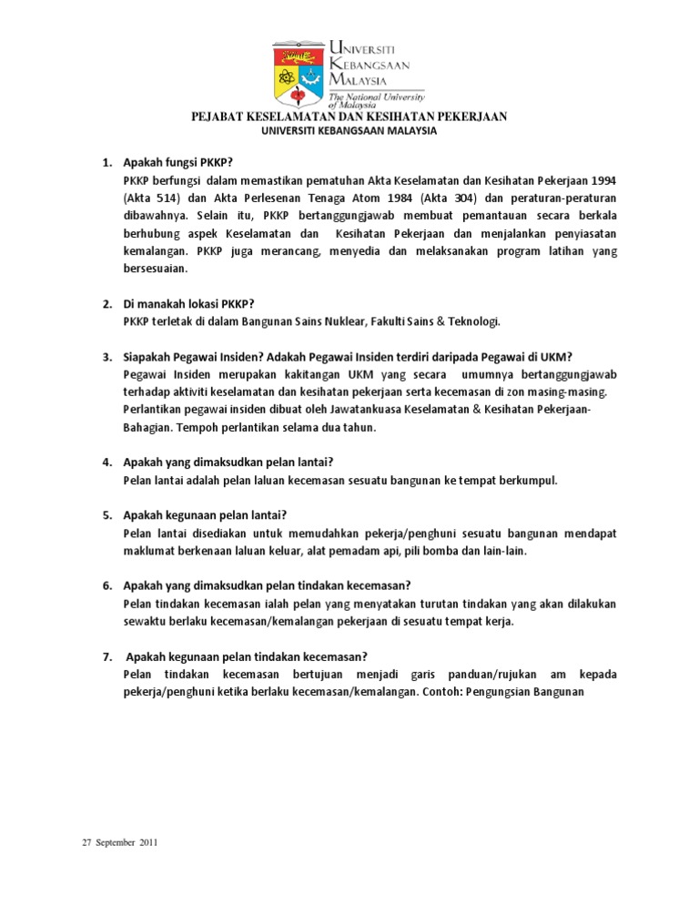 Pejabat Keselamatan Dan Kesihatan Pekerjaan Universiti Kebangsaan Malaysia