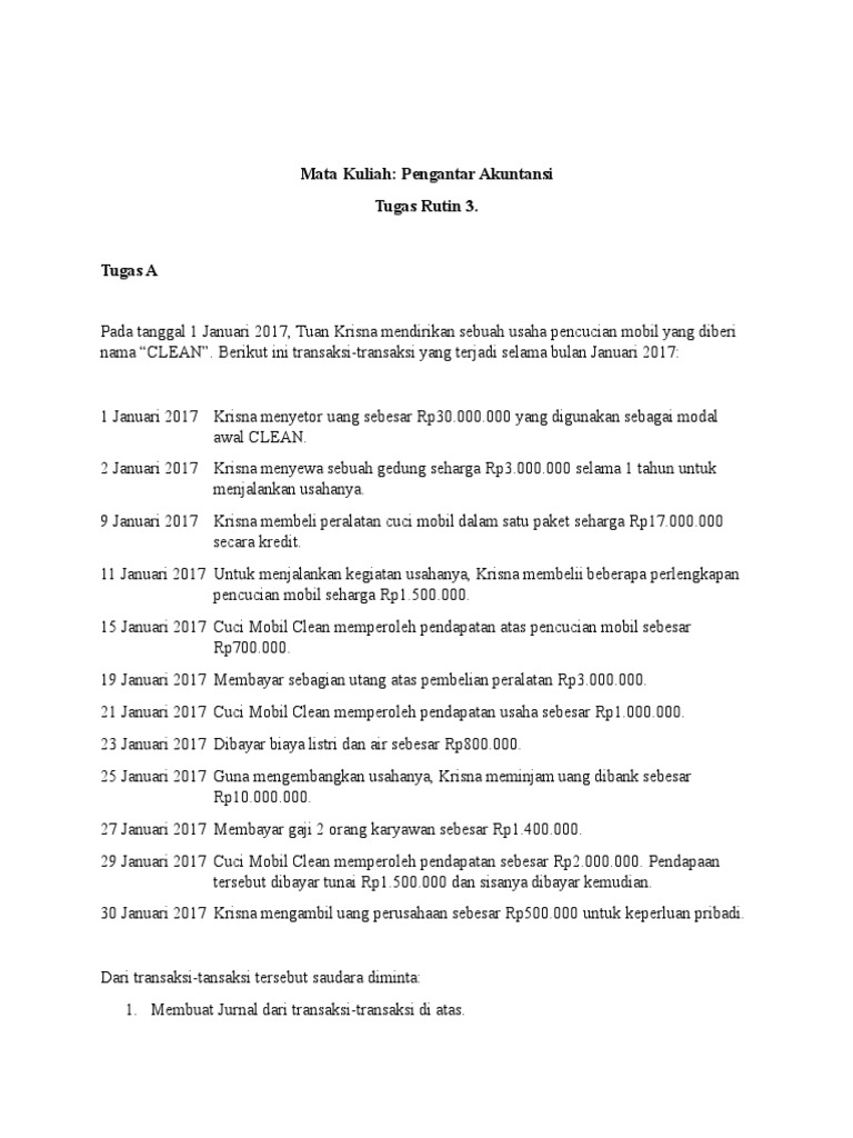 Tanggal Transaksi Januari 2017 1 Tuan Jaya Menyetorkan Dana Tunai Sebesar Rp 15 000 000 Sebagai Brainly Co Id