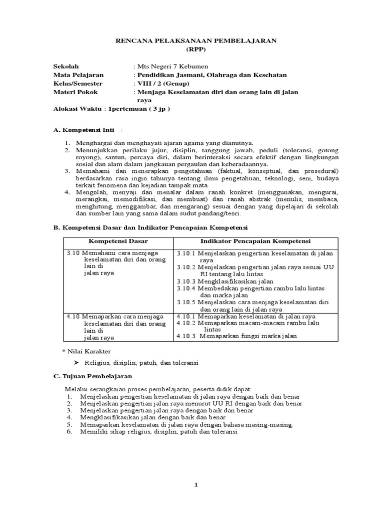 11 Rpp 7 Menjaga Keselamatan Diri Dan Orang Lain Di Jalan Raya Docx Rencana Pelaksanaan Pembelajaran Rpp Satuan Pendidikan Mata Pelajaran Course Hero
