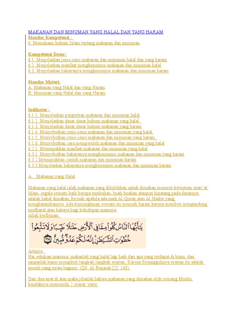 Doc Ayat Al Qur An Dan Hadits Tentang Makanan Yang Baik Dan Halal Serta Giat Bekerja Dita Dita Academia Edu