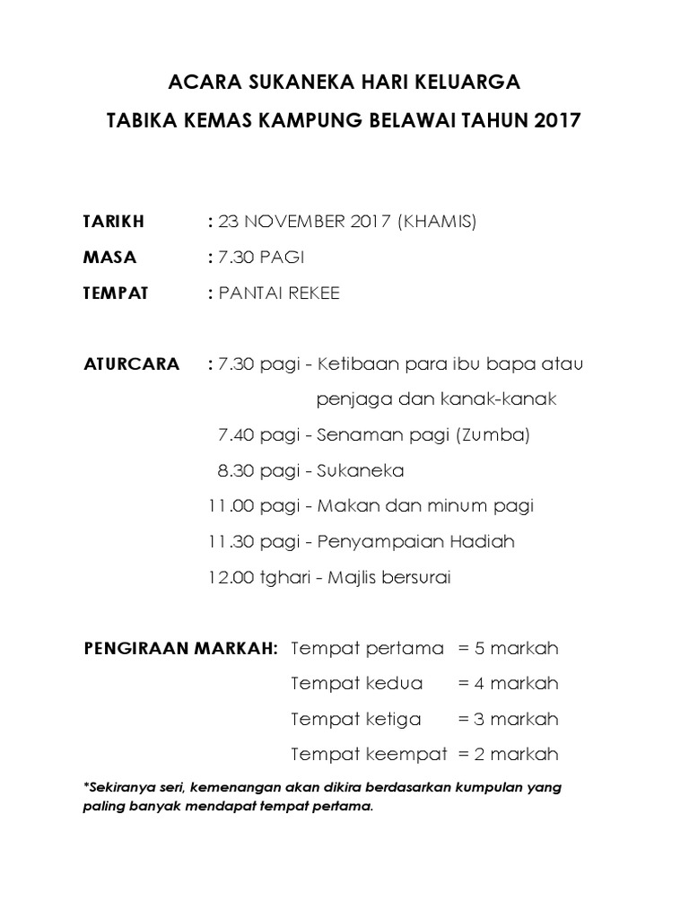 Doc Kertas Kerja Hari Keluarga Dan Sukan Tahunan Jumaadil Talakan Academia Edu