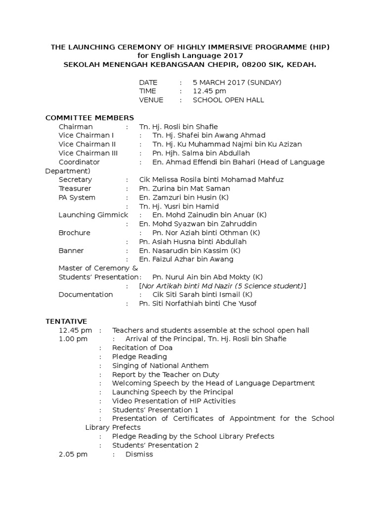 Emcee Script For Hip Launching Ceremony Doc Human Communication Cognitive Science