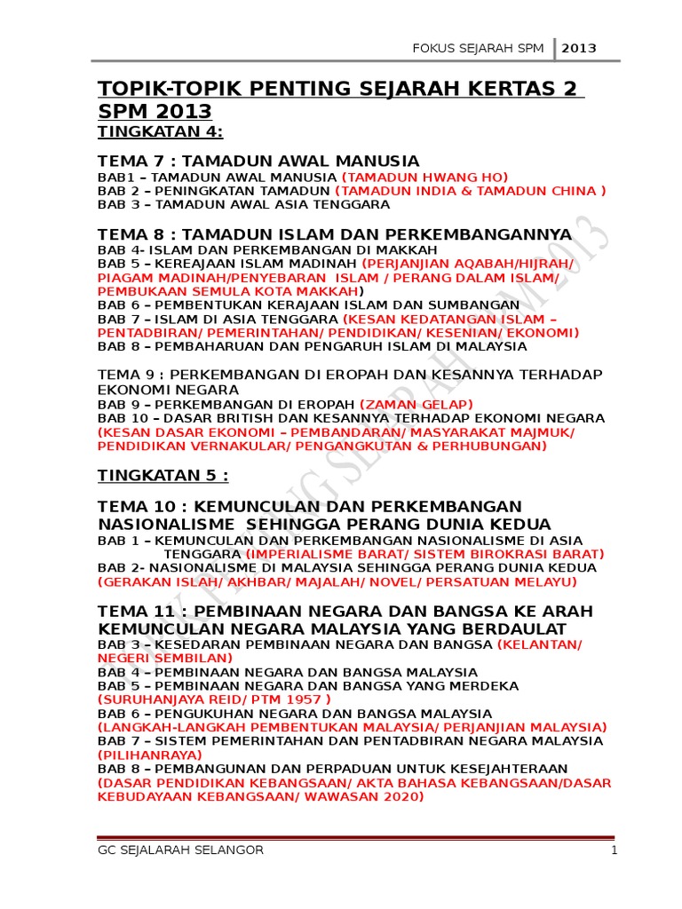 Doc Tajuk Tajuk Tumpuan Sejarah Kertas 2 Spm Tahun 2015 Kangsar Othman Academia Edu