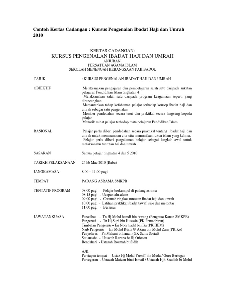 Contoh Kertas Cadangan
